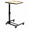 Надкроватный столик из пластика, устанавливаемый на боковые ограждения шириной он 80 до 105 см. Столик оснащён регулируемыми раздвижными кронштейнами, с помощью которых фиксируется между боковыми ограждениями госпитальных, или домашних кроватей лежачего больного с различной шириной ложемента. Расстояние между боковыми ограждениями от 80 до 105 см. сделан из пластика с декоративной ПВХ плёнкой по центру столешницы и оснащён для прочности стальными кронштейнами и рамой. Использованные материалы и особенности открытой конструкции столика позволяют его мыть под струёй воды.
